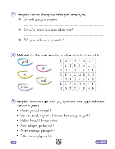 3 Metindeki sözcüklerin zıt anlamlılarını bulmacada bulup işaretleyiniz.