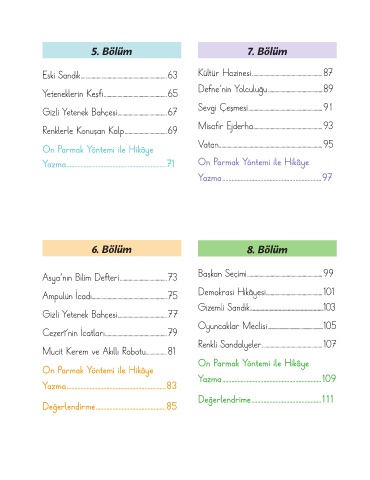 Yazma .................................................................71 On Parmak Yöntemi ile Hikâye