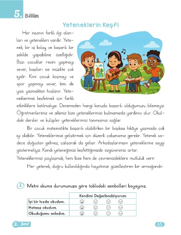 1 Metni okuma durumunuza göre tablodaki sembolleri boyayınız.