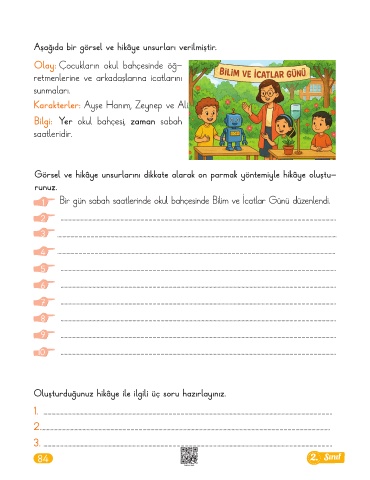 Oluşturduğunuz hikâye ile ilgili üç soru hazırlayınız.