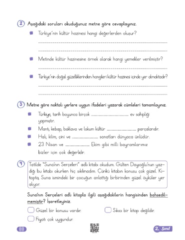 2 Aşağıdaki soruları okuduğunuz metne göre cevaplayınız.