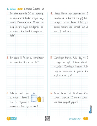 2. Bir cezve 5 fincan su almaktadır. 5. Candeğer Hanım, Ulvi Bey ve 2