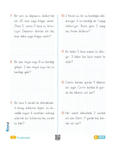 7. Bir evin su deposunu doldurmak 10. 2 fincan su, bir su bardağını dol-