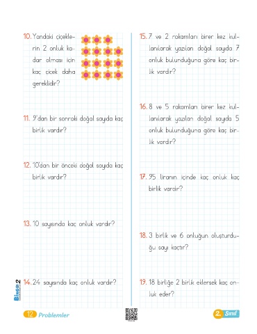 MATEMATİK PROBLEMLERİ2 14. 24 sayısında kaç onluk vardır? 19. 18 birliğe 2 birlik eklersek kaç on-