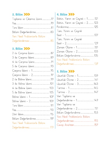 2 ile Çarpma İşlemi .............................. 87 Zaman Ölçme - 2 ..............................133