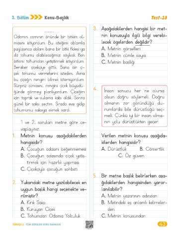 1 ve 2. soruları metne göre ce- nın yolu dürüstlükten geçer.