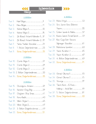 Test 8: 1. Bölüm Değerlendirmesi ............23 Test 28: Noktalama İşaretleri ........................63