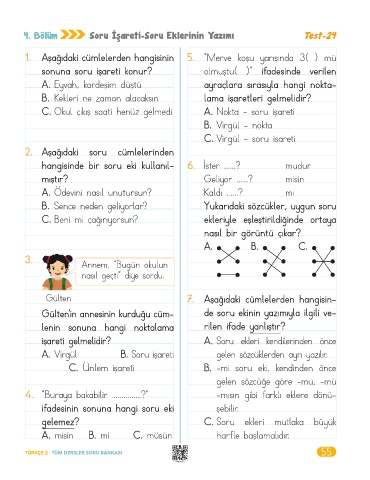 4. Bölüm Soru İşareti-Soru Eklerinin Yazımı Test-24