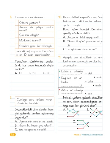 8. Tansu’nun soru cümleleri: 10. Berna, defterine yazdığı soru cüm-