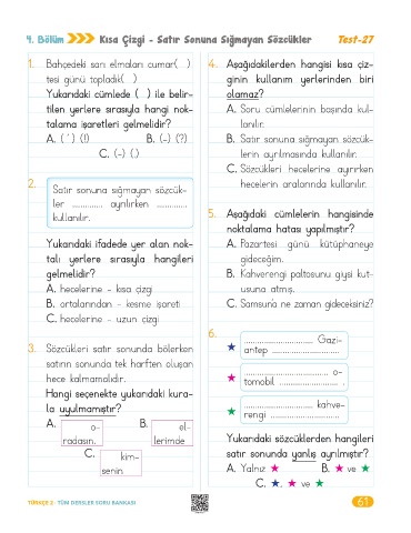 4. Bölüm Kısa Çizgi - Satır Sonuna Sığmayan Sözcükler Test-27