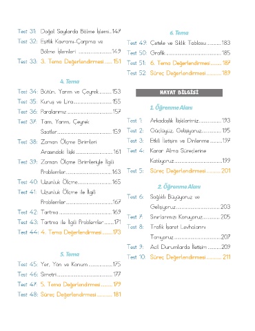Test 33: 3. Tema Değerlendirmesi ...... 151 Test 51: 6. Tema Değerlendirmesi ..........187