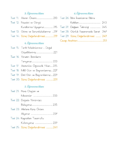 Test 13: Görev ve Sorumluluklarımız ...217 Test 28: Günlük Yaşamımızda Sanat 247