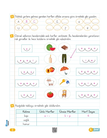 3 Görsel adlarının hecelerindeki sesli harfler verilmiştir. Bu hecelemelerden yararlana-