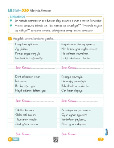 1 Aşağıdaki şiirlerin konularını yazalım.