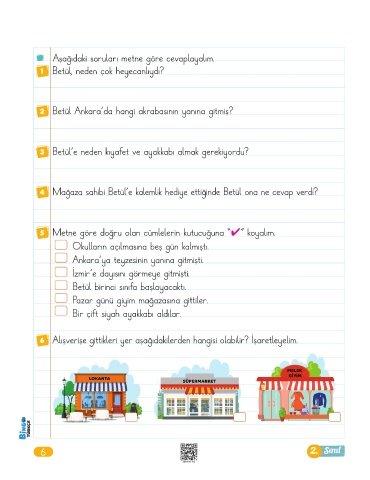 6 Alışverişe gittikleri yer aşağıdakilerden hangisi olabilir? İşaretleyelim.