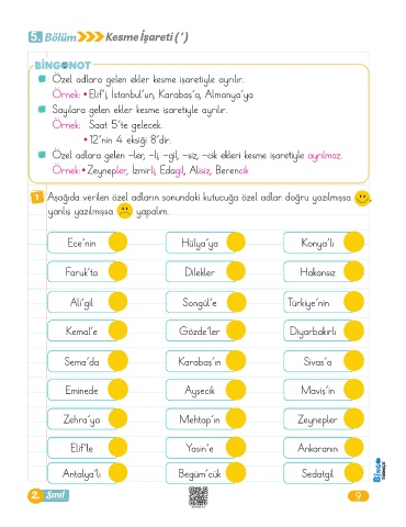 1 Aşağıda verilen özel adların sonundaki kutucuğa özel adlar doğru yazılmışsa ,