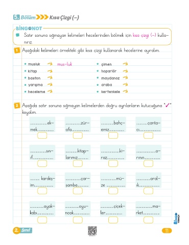 1 Aşağıdaki kelimeleri örnekteki gibi kısa çizgi kullanarak hecelerine ayıralım.