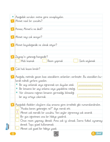 1 Ahmet çok meraklı bir çocuktu. Yeni şeyler öğrenmeyi çok severdi.