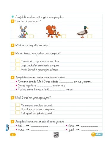 • Ormanın birinde Minik Serçe adında ....................................... bir kuş yaşarmış.