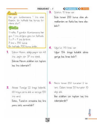 PARALARIMIZ - 1 Problemler 4. Bölüm