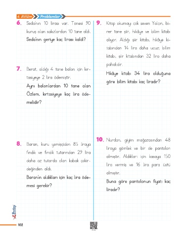 6. Seda’nın 10 lirası var. Tanesi 90 9. Kitap okumayı çok seven Yalçın, bi-