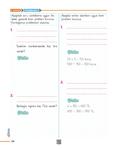 Berkay’ın toplam kaç TL’si vardır? 4 x 150 = 600 TL
