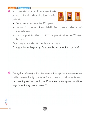 • Kabuklu fındık paketinin kütlesi 750 gramdır.