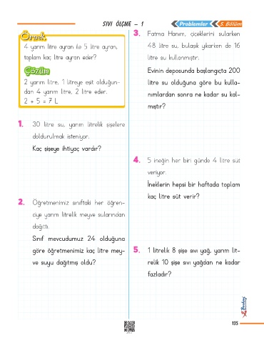sıvı ölçme – 1 Problemler 5. Bölüm