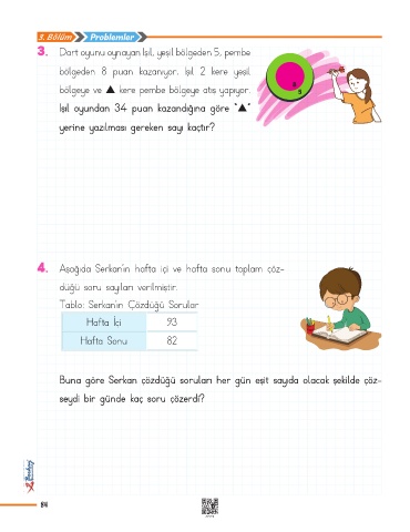 4. Aşağıda Serkan’ın hafta içi ve hafta sonu toplam çöz-