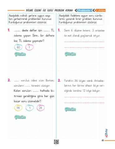 bölme işlemi ile ilgili PROBLEM KURMA Problemler 3. Bölüm