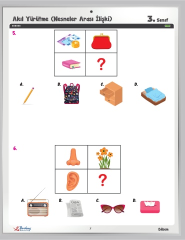 Akıl Yürütme (Nesneler Arası İlişki) 3. Sınıf 5. A. B. C. D. 6. A. B. Gazete C. D. 7 Bilsem
