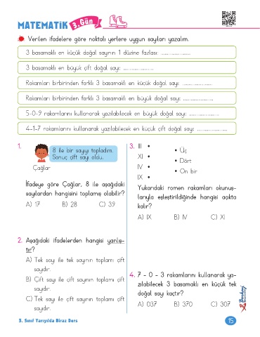 B) Çift sayı ile çift sayının toplamı çift 4. 7 - 0 - 3 rakamlarını kullanarak ya-