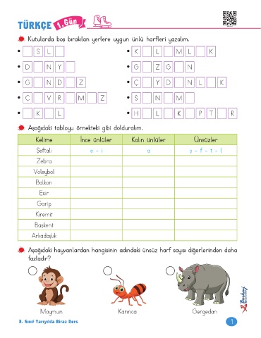 Kutularda boş bırakılan yerlere uygun ünlü harfleri yazalım.