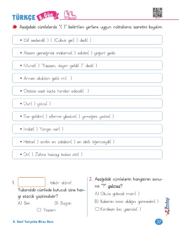 Aşağıdaki cümlelerde "( )” belirtilen yerlere uygun noktalama işaretini koyalım.
