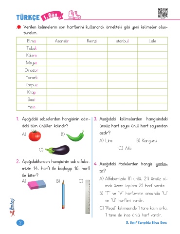 1. Aşağıdaki sebzelerden hangisinin adın- 3. Aşağıdaki kelimelerden hangisindeki