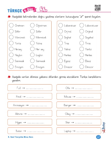 Aşağıdaki kelimelerden doğru yazılmış olanların kutucuğuna "" işareti koyalım.