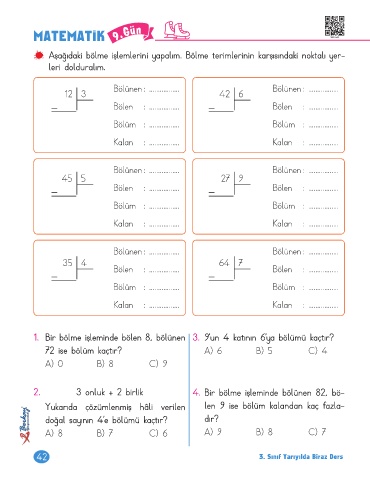 Aşağıdaki bölme işlemlerini yapalım. Bölme terimlerinin karşısındaki noktalı yer-