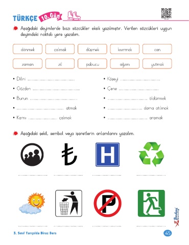Aşağıdaki deyimlerde bazı sözcükler eksik yazılmıştır. Verilen sözcükleri uygun