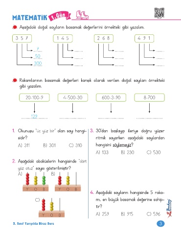 1. Okunuşu “üç yüz bir” olan sayı hangi- 3. 30’dan başlayıp ileriye doğru yüzer