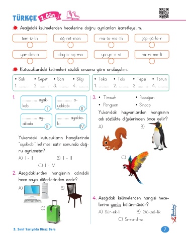 Kutucuklardaki kelimeleri sözlük sırasına göre sıralayalım.