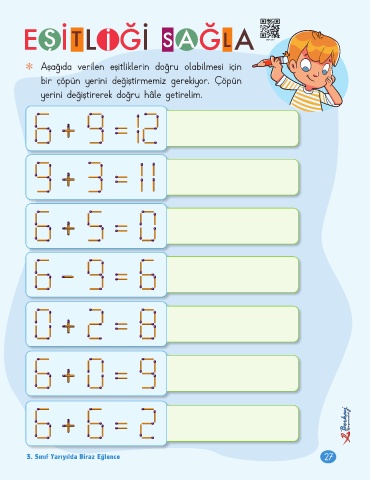 E İ L Ğ İ S A Ğ L A 3BE-027 Ş T İ Aşağıda verilen eşitliklerin doğru olabilmesi için bir çöpün yerini değiştirmemiz gerekiyor. Çöpün yerini değiştirerek doğru hâle getirelim. + + + - + + + 3. Sınıf Yarıyılda Biraz Eğlence 27