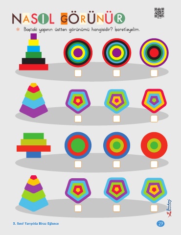 N SL G Ö Ü Ü R 3BE-029 I N R A Baştaki yapının üstten görünümü hangisidir? İşaretleyelim. 3. Sınıf Yarıyılda Biraz Eğlence 29