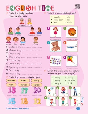 Write the numbers. (Sayıları yaz.) a. thirsty d. angry