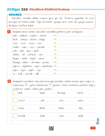 2 Aşağıdaki sözcüklerin başındaki kutucuğa sözcükler sözlük sırasına göre doğru sı-