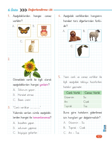 3. “Canlı varlıklar ..................” Toprak Taş