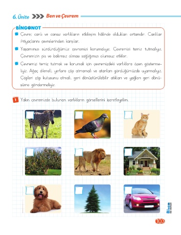 1 Yakın çevremizde bulunan varlıkların görsellerini işaretleyelim.