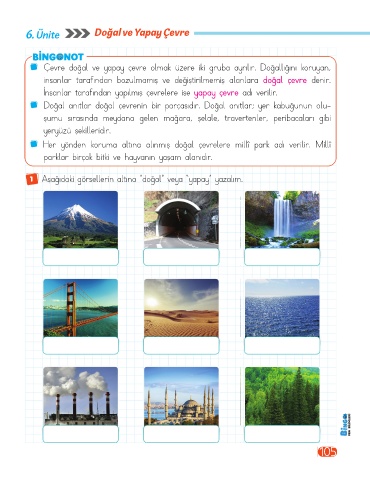 1 Aşağıdaki görsellerin altına "doğal” veya "yapay” yazalım.