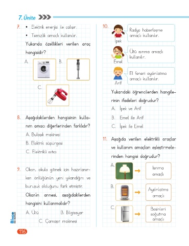 7. • Elektrik enerjisi ile çalışır. 10.