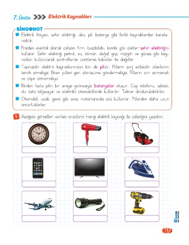 1 Aşağıda görselleri verilen araçların hangi elektrik kaynağı ile çalıştığını yazalım.