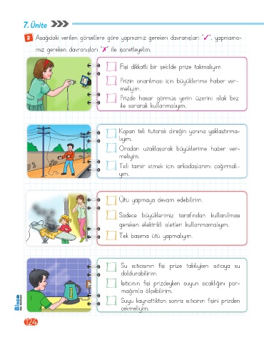 2 Aşağıdaki verilen görsellere göre yapmamız gereken davranışları "✓”, yapmama-